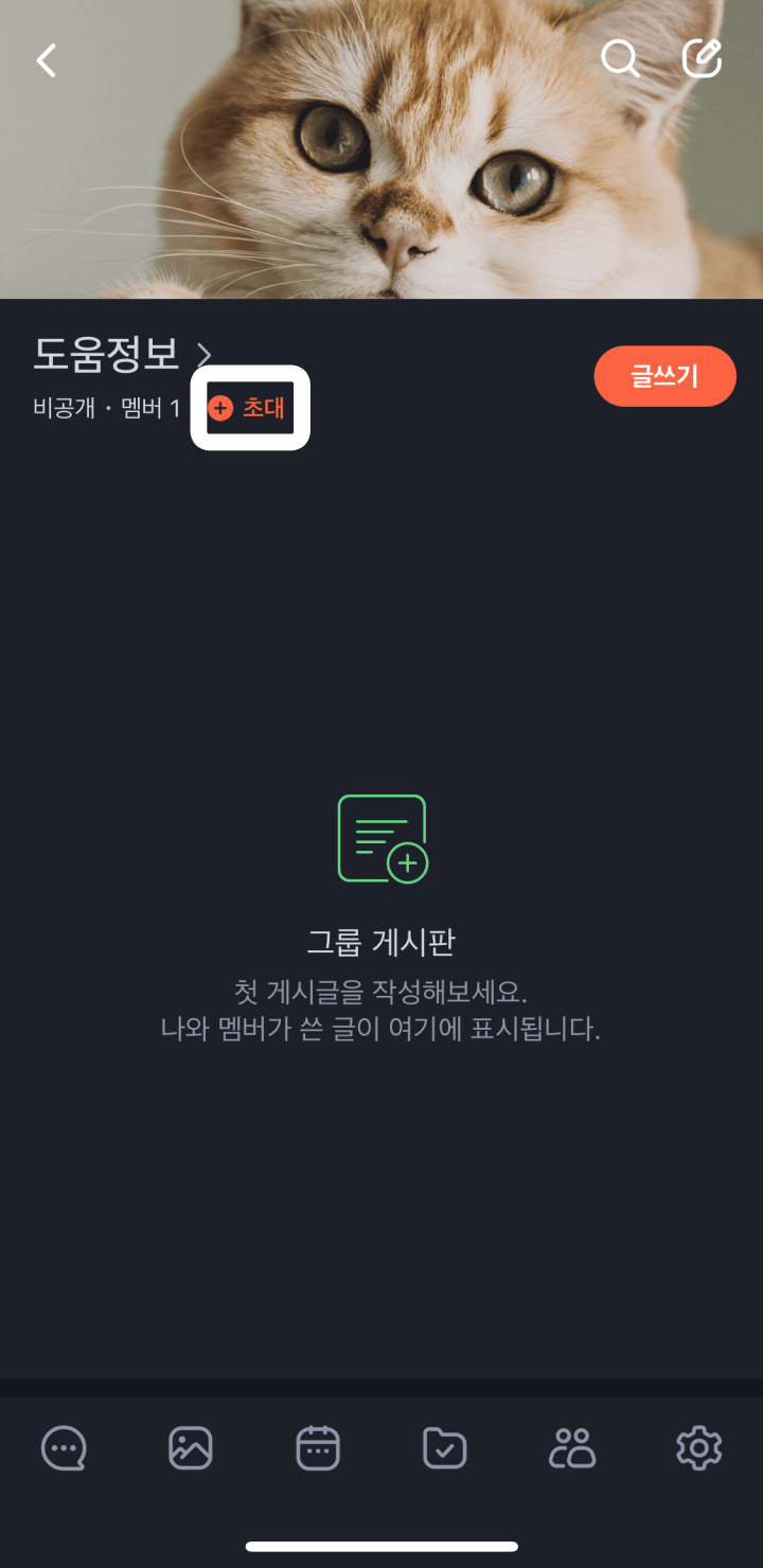 2. 개별밴드 홈 화면 상단에 위치한 초대 버튼을 클릭한다.