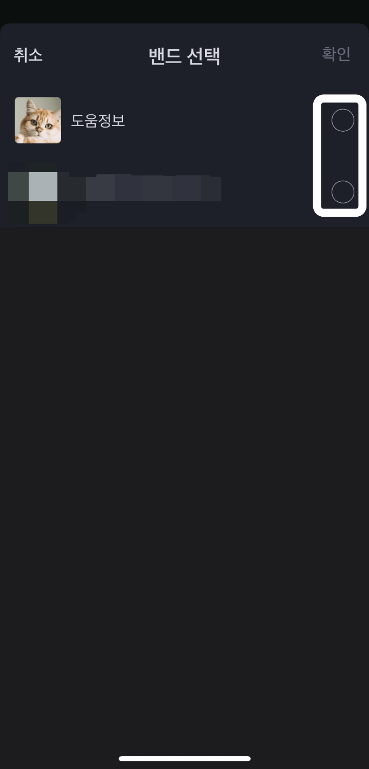 6. 자신이 가입된 밴드 중 초대할 밴드를 선택하면 완료