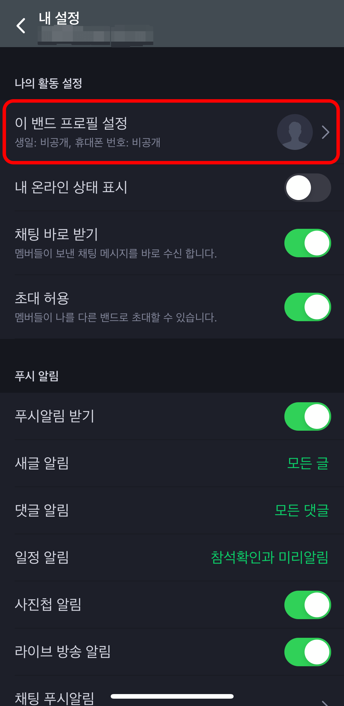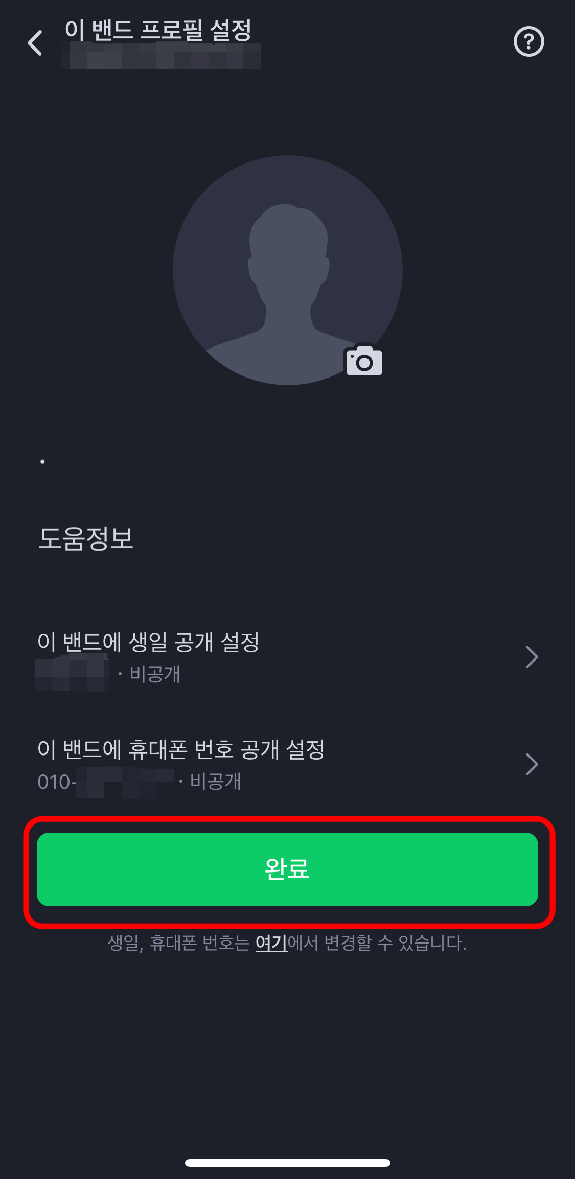 네이버밴드 연락처 및 생일 공개여부 설정방법