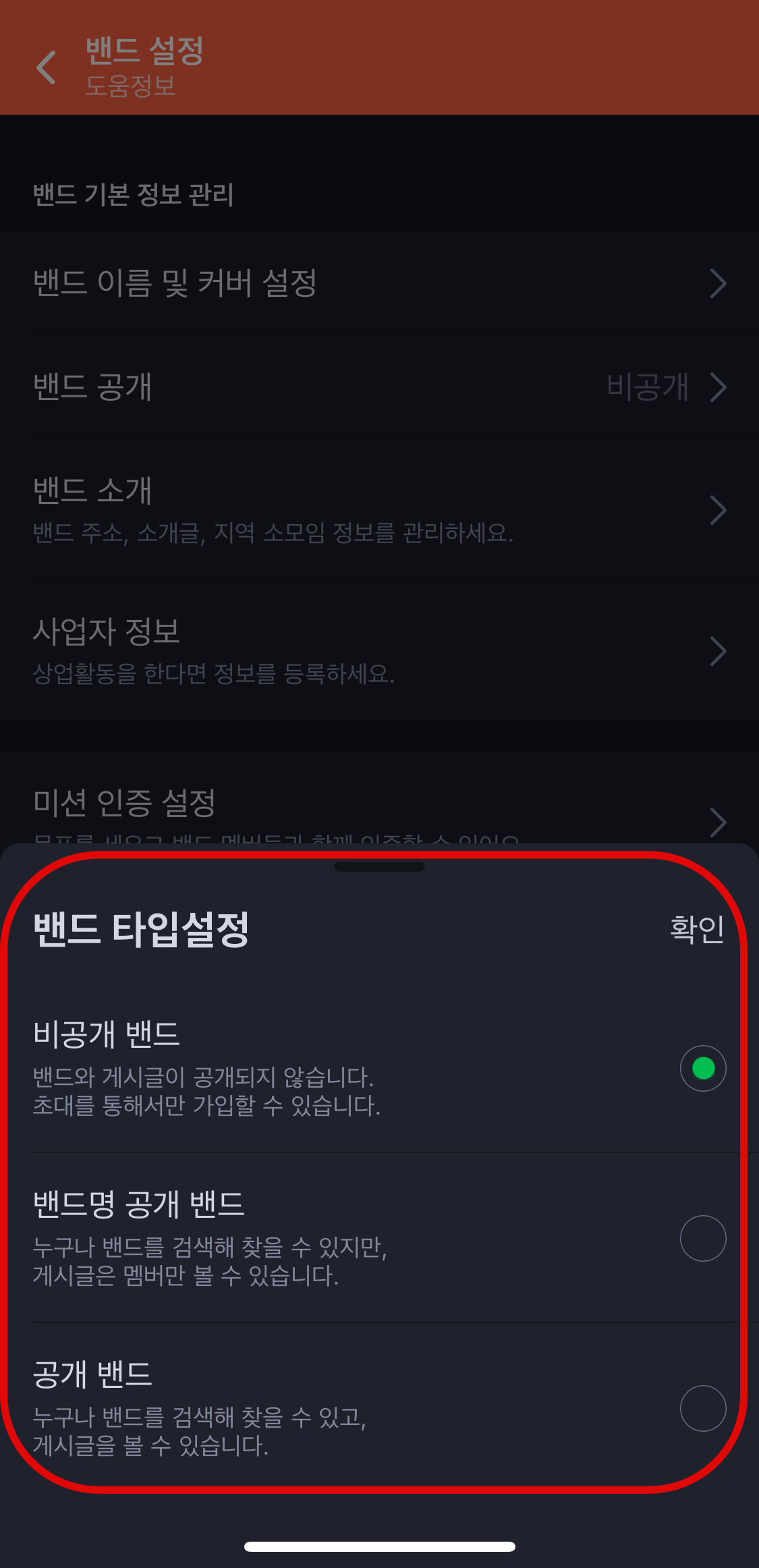 네이버밴드 밴드 타입 설정하는 방법