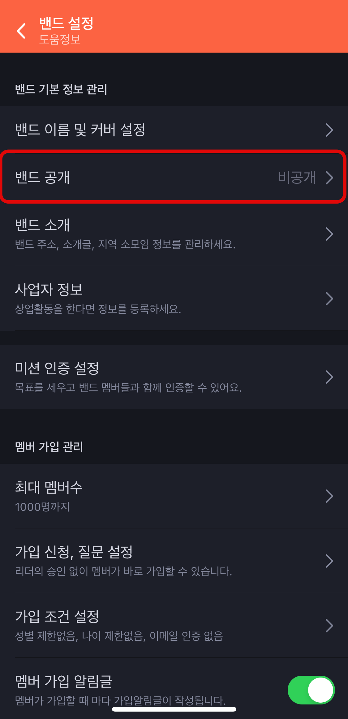 네이버밴드 밴드 타입 설정하기