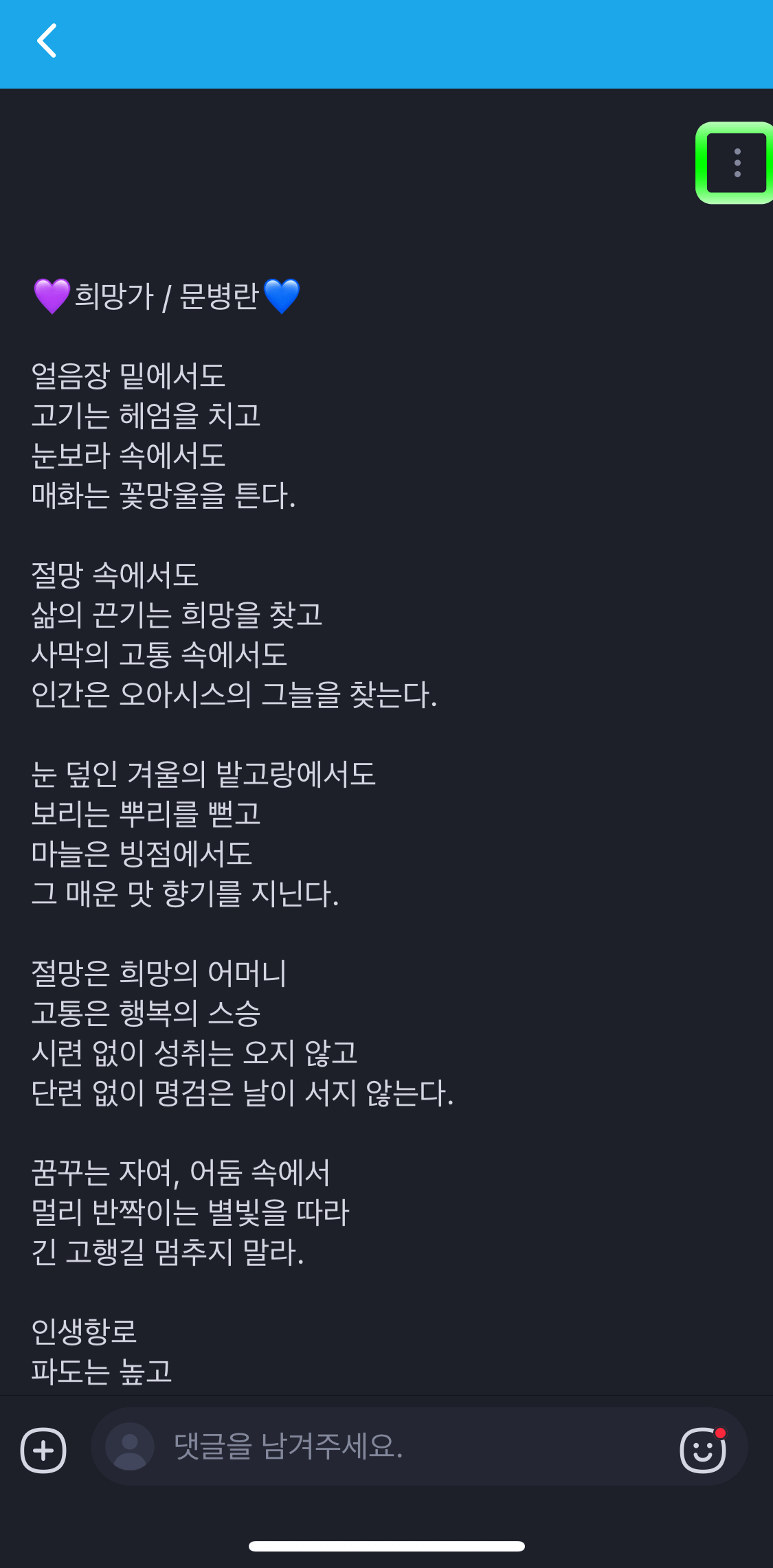 2. 우측 상단에 존재하는 점 3개 버튼을 클릭하여 게시글 설정에 들어간다.